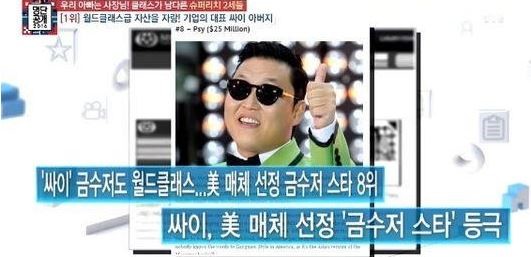 싸이는 과거 방송된 tvN ‘명단공개 2016’(이하 ‘명단공개’)에서 '슈퍼리치 아버지를 둔 스타들'을 주제에서 1위를 차지했다.