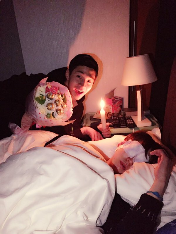 사진에는 규현이 잠을 자고 있는 모습과 함께 헨리가 규현의 침실로 들어와 있는 장면이 담겨있어 눈길을 끌고 있다. 헨리는 해맑은 표정으로 초와 꽃다발을 들고 이날 생일을 맞은 규현을 축하했다.