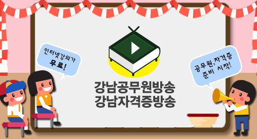 사회적 기업 강남공무원방송에서는 7급 9급 공무원무료인강은 물론 9급 공무원 기출문제, 7급 공무원 기출문제, 공무원 시험과목 등 다양한 정보를 알려주고 공무원 시험일정, 7급 9급 공무원 전망, 7급 9급 공무원종류 등의 세밀한 내용까지 신경써준다.