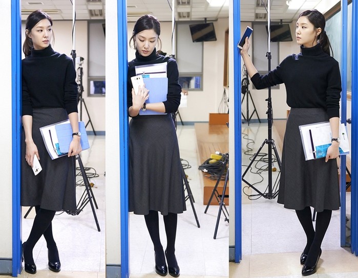 서지혜의 ‘막찍화(막 찍어도 화보)’ 장면은 지난해 12월 20일 서울 종로에 위치한 한 학원에서 촬영됐다. 서지혜는 검은색 폴라티에 검은색 스타킹, 회색의 롱 A라인 스커트를 매치하고 손목에는 컬러를 맞춘 검정 가죽 밴드 시계를 착용, ‘완벽한 티처룩’을 선보여 현장을 주목케 했다.
