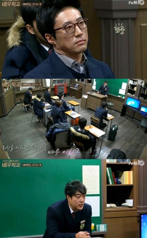 이원종은 4일 방송된 tvN '배우학교'에 연기 미생 7인방 장수원, 이진호, 심희섭, 박두식, 유병재, 남태현과 함께 출연해 연기를 배웠다.
