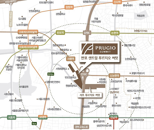 ‘반포 센트럴 푸르지오 써밋’은 명문대 진학률이 전국에서 4번째로 높은 명문고교인 반포고가 바로 옆에 위치하고 있으며, 테헤란로, 강남대로 등 업무지구가 가깝고, 지하철 2·3·7·9호선을 모두 이용할 수 있는 강남 교통의 중심에 위치하고 있다.