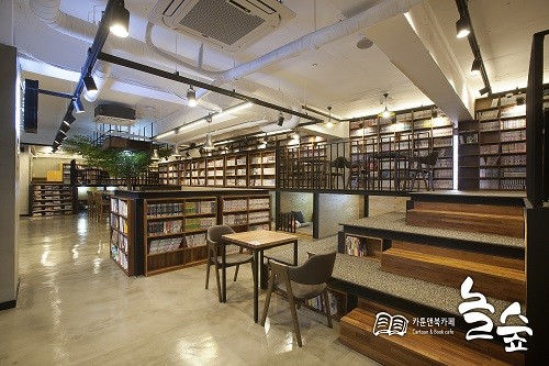 카툰&북카페 ‘놀숲’은 복합 문화공간으로, 업계 최초 자체 디자인 연구소를 통한 고급스럽고 감각적인 인테리어로 만화방에 대한 새로운 패러다임을 제시한다. 독서를 위한 잔잔한 음악이 깔린 안락한 공간에서 3만여 권의 만화책뿐만 아니라 여행, 인문, 에세이 등 다양한 분야의 신간도서를 즐길 수 있어 이색적인 데이트 장소 및 힐링 장소로 각광받고 있다. 또한 차별화된 흡연실과 고객의 취향을 고려한 다양한 카페메뉴를 바탕으로 이용객들의 호평이 자자하다.