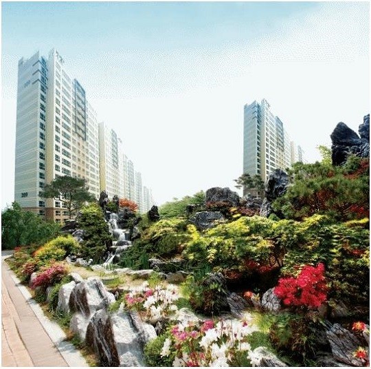 전세대 남향위주에 판상형으로 배치되어 있어 인기가 높으며 일부단지에 탑상형이 조화를 이루어 배치되어있다.