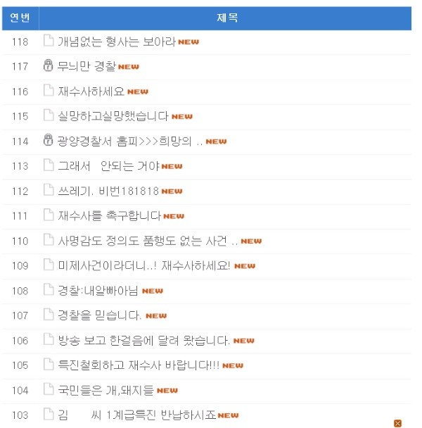 한편 이와 같은 내용이 방송되자 시청자들은 당시 사건을 맡았던 관할 경찰서 홈페이지 민원창구에 글을 올리며 재수사를 촉구했다.