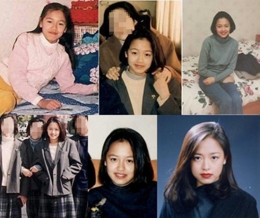 사진 속 그는 각각 나이가 다름에도 한결 같은 모습. 다소 촌스러운 메이크업과 헤어스타일에도 그 미모는 가려지지 않았다. 교복사진 마저절정의 미모를 뽐냈다.