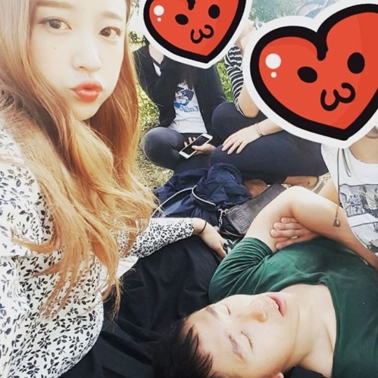 사진 속 하니는 동생 안태환씨를 무릎에 누인 채 입술을 내밀며 사진을 찍었다.