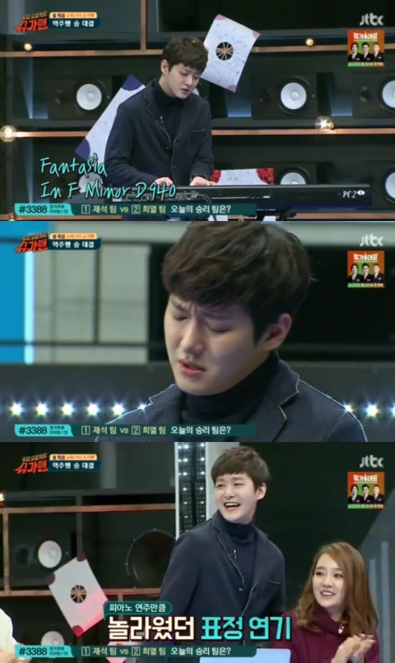 신지호는 '슈가맨'에서 애절한 표정과 섬세한 피아노 연주 실력을 뽐냈다. 그는 Fantasia In F Minor D.940를 연주해 아름다운 선율을 고혹적인 연주로 듣는 이들의 귀를 사로잡았다.