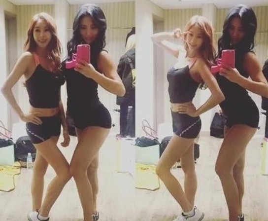 사진속 지나는 짧은 슬립탑에 숏팬츠를 입고 복근을 살짝 드러내며 카메라를 응시하고 있다. 정아름 역시 탄력있는 S라인 몸매를 과시하며 핸드폰을 바라보고 있다.