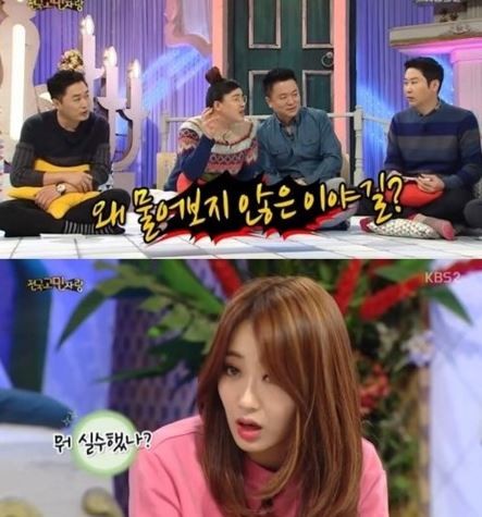 이날 MC들은 정성호에게 “왜 ‘안녕하세요’에 한 번도 나오지 않았나?”라고 물었다. 이와같은 상황에서 갑자기 경리가 손을 번쩍 들더니 “웃긴 거 말 해드릴까요? 저 여기 한 번 나왔었어요”라고 말했다.