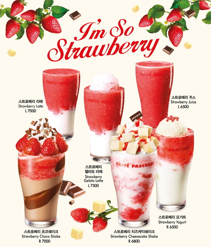 파스쿠찌는 “딸기 제철을 맞아 신선한 생 딸기를 활용한 다양한 메뉴를 준비했다”면서 “비타민C와 각종 영양소가 풍부한 딸기 제품들로 활기차고 건강한 봄을 맞이하시길 바란다”고 밝혔다.