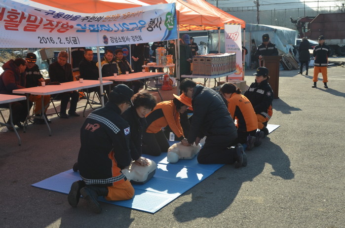 최근 서울 강남소방서는 개포동 구룡마을 일대에서 소방공무원, 의용소방대원, 구룡마을 주민 80여명이 참석한 가운데 '생활밀착형 안전PLUS 교육'을 실시했다. 사진은 심폐소생술 교육이 진행되는 모습.(사진제공=강남소방서)