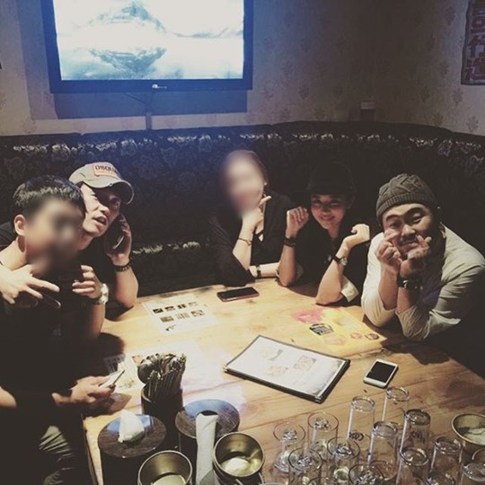 공개된 사진 속 세 사람은 지인들과 함께 술집에서 다정하게 카메라를 바라보며 기념사진을 찍고 있다. 특히 어둠 속에서도 숨길 수 없는 미모가 눈길을 끈다.