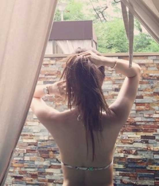 공개된 사진 속 한채아는 비키니를 입고 목선과 명품 바디라인을 선보였다.