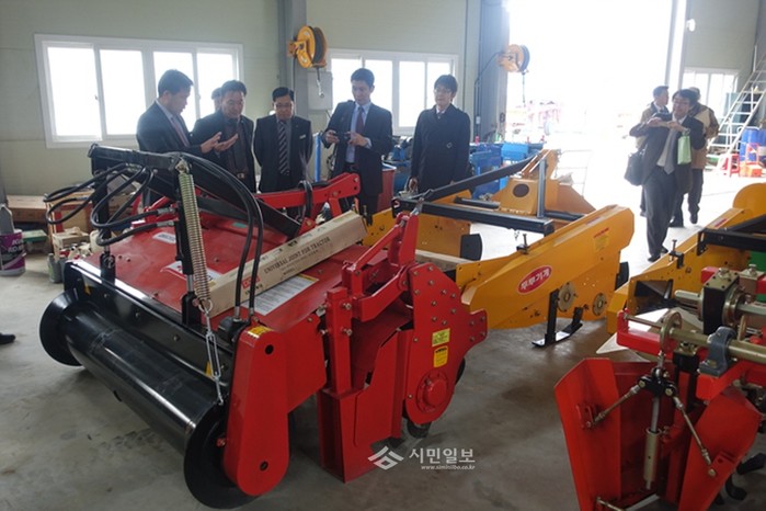 지난 11일 경기 여주시농업기술센터에 일본 JA전농 관계자 등 6명이 여주의 농산물 생산현황과 농업기술을 벤치마킹하기 위해 방문했다. 사진은 관계자들이 농기계를 살펴보는 모습.(사진제공=여주시청)