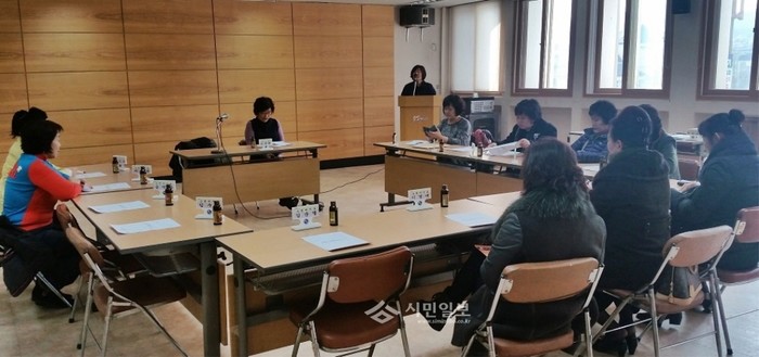 지난 11일 경북 구미시 송정동은 동주민센터 2층 회의실에서 그린바이크 사랑봉사대 회원 15명이 참석한 가운데 올해 첫 월례회의를 개최했다. 사진은 관계자들이 회의하는 모습.(사진제공=구미시청)
