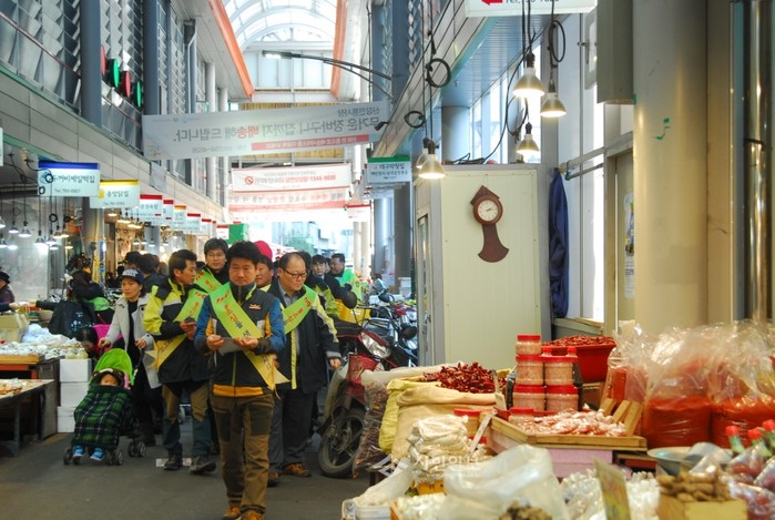 최근 경기 하남소방서는 신장시장에서 소방공무원, 의용소방대, 시청직원 등 50여명이 참여한 가운데 전통시장 안전사고 및 화재예방 캠페인을 실시했다.(사진제공=하남소방서)