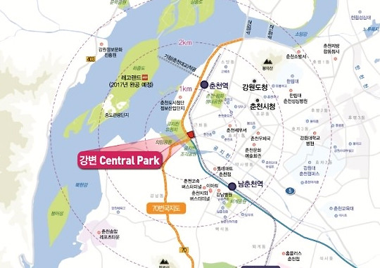 ‘춘천 강변센트럴파크’는 북한강 조망이 가능하고, 춘천 최초의 4Bay 구조로 통풍과 채광이 우수하며, 무엇보다 춘천 최고의 개발호재인 레고랜드가 인접해 있어 최고 수혜 아파트로 주목 받고 있다.