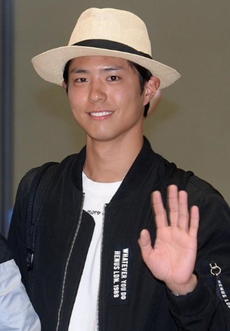 게재된 사진속 박보검은 블랙컬러의 점퍼에 화이트 티셔츠를 입고 손인사를 하고 있다. 특히 중절모와 함께 까맣게 탄 모습이 인상적이다.