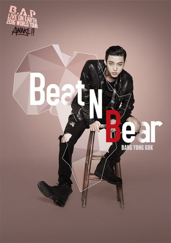 15일 B.A.P의 공식 채널은 'B.A.P LIVE ON EARTH 2016 WORLD TOUR' 개인 포스터가 기습 공개했다. 개인 포스터의 첫 주자는 리더 방용국으로, 카메라 렌즈를 꿰뚫는 듯한 강렬한 눈빛이 인상적이다. 한 마리 맹수를 연상시키는 포즈는 6개 대륙 중 하나인 아프리카 대륙을 형상화한 것이 눈길을 끈다.