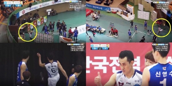 이날 경기에서 한국전력의 라이트 공격수 얀 스토크의 공격을 대한항공의 리베로 최부식이 선수들의 대기라인 끝까지 쫓아가 발로 수비하는 장면이 여러 각도의 카메라에 포착됐다.