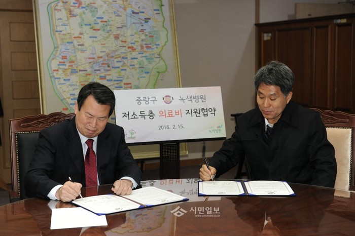 중랑구, 녹색병원과 저소득층 의료비 지원 협약