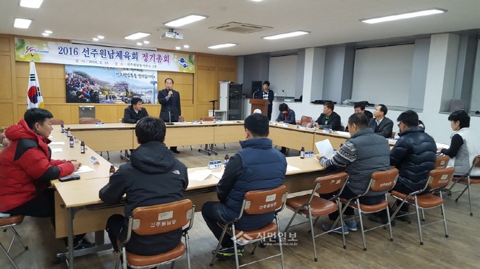 경북 구미시 선주원남동에서는 지난 15일 오후 7시 동주민센터 2층 회의실에서 시·도의원 및 체육회원 등 30여명이 참석한 가운데 ‘2016년 체육회 정기총회’를 개최했다.(사진제공=구미시청)