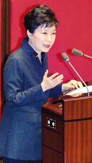 박근혜 대통령이 16일 오전 서울 여의도 국회에서 북한의 도발에 따른 안보 위협과 관련해 정치권의 협조와 국민 단합을 강조하는 연설을 하고 있다.