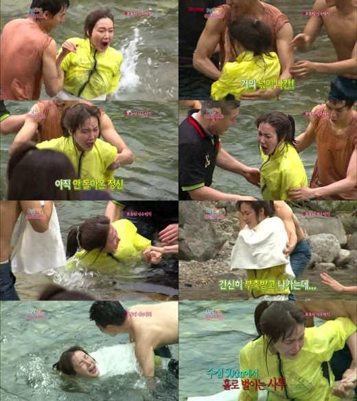 이같은 상황에서 이승기는 최지우를 물에서 건져냈으나 한동안 눈도 뜨지 못한 채 허우적거렸다. 결국 스태프들의 도움을 받아 뭍으로 나온 최지우는 그제야 정신이 드는 듯 미소를 띤 채 다른 출연자들이 계곡에 몸을 담그는 모습을 지켜봤다.