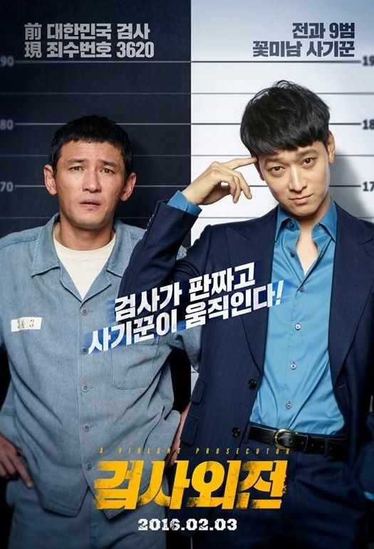 '검사외전'은 살인누명을 쓰고 수감된 검사가 감옥에서 만난 전과 9범 꽃미남 사기꾼의 혐의를 벗겨 밖으로 내보낸 후 그를 움직여 누명을 벗으려는 내용을 그리는 범죄 오락 장르의 작품이다.
