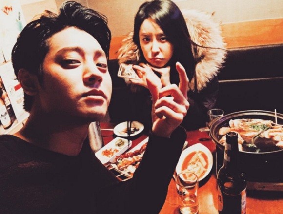 공개된 사진 속 정준영과 정유미는 편안한 분위기에서 술을 마시며 포즈를 취하고 있다.