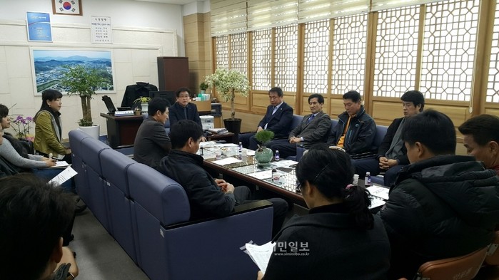 지난 17일 경북 구미시 양포동에서는 동장실에서 도·시의원, 수요회(양포동 자생단체장 모임) 회원 16명이 참석한 가운데 2월 수요회의를 개최했다. 사진은 관계자들이 회의를 하는 모습.(사진제공=구미시청)