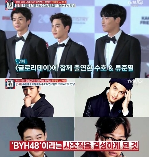 또 수호와 류준열은 영화 '글로리데이'에 함께하며 친분을 쌓았다. 이러한 연결고리 덕에 이들은 'HYH48'라는 사조직을 결성한 것으로 알려졌다.