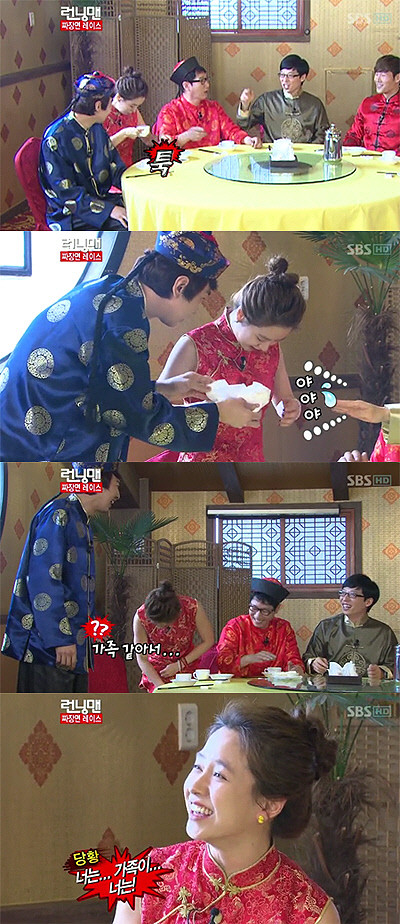 이광수의 행동에 송지효는 "너는... 가족이... 너는..."라며 말을 더듬거리며 이광수의 엉뚱한 행동에 폭소했다.