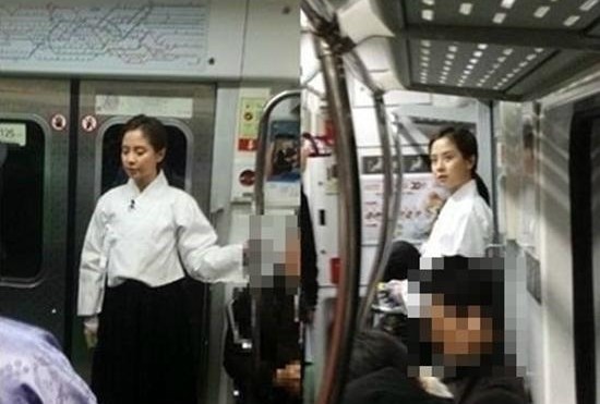 최근 온라인 커뮤니티에는 '송지효 지하철 포착'이란 제목으로 한 장의 사진이 게재됐다.