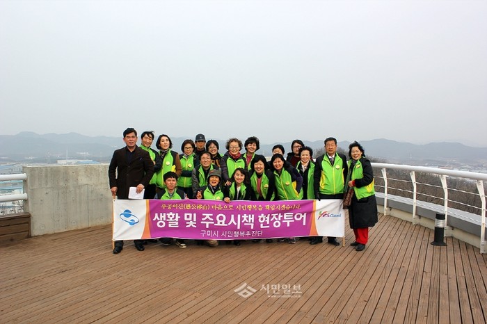 지난 23일 경북 구미시 시민행복추진단은 구미국가5산업단지, 삼성전자, 해마루공원을 방문해 생활 및 주요시책 현장투어를 실시했다. 사진은 행사에 참가한 관계자들이 기념촬영을 하는 모습.(사진제공=구미시청)