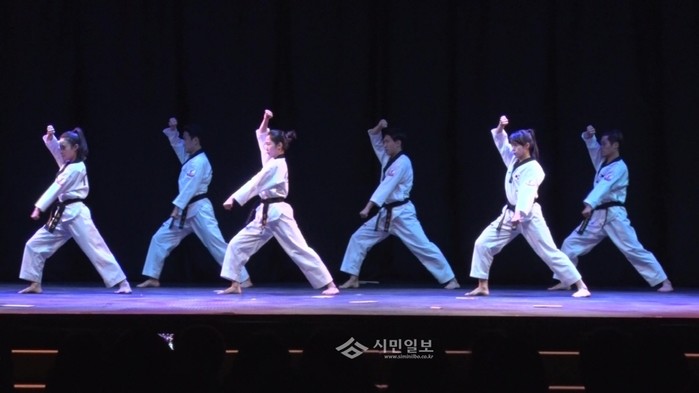 최근 서울 강남구는 국기원에서 ‘태권도 상설공연 open 시사회’를 개최했다. 사진은 행사에 참석한 국기원 관계자들이 태권도 시범을 진행하는 모습.(사진제공=강남구청)