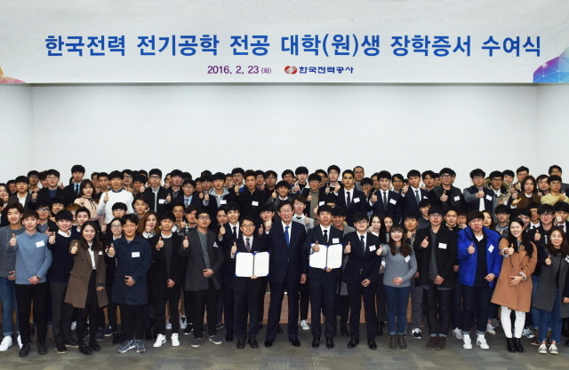 이날 한전은 전기공학 전공을 운영하고 있는 전국 59개 대학교 및 8개 대학원의 전기공학도 91명에게 장학증서를 수여하고 약 8억5000만원의 장학금을 전달했다.