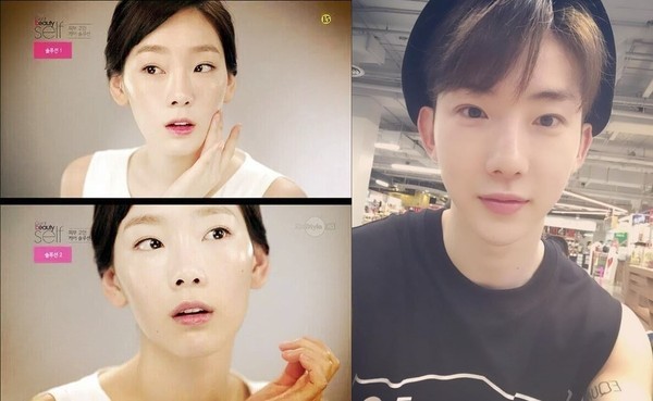 사진속 조권은 태연의 살짝 날카로운 눈매와 하얀 피부, 그리고 작은 얼굴형과 오똑한 코와 묘한 싱크로율을 자랑하며 이목을 집중시켰다.