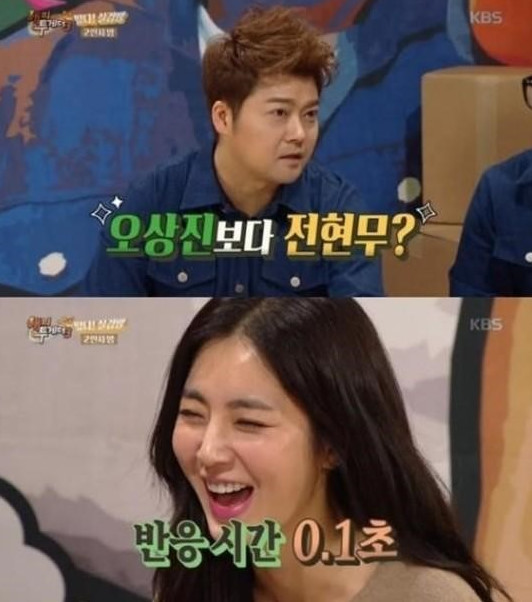전현무는 "그럼 오상진보다 전현무가 낫냐"고 묻자, 그는 "오상진이 더 나은 것 같다"고 망설임 없이 대답해 웃음을 자아냈다.