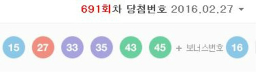 한편 30일 나눔로또는 제687회 로또복권 추첨에서 '15, 27, 33, 35, 43, 45 보너스 번호 16'이 당첨 번호로 뽑혔다.