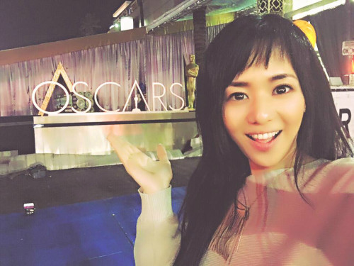 아오이 소라는 아카데미 시상식이 열리는 돌비씨어터를 배경으로 사진을 찍고 있다. 그는 세계 최고의 별들이 모이는 지구촌 영화의 대축에 현장에 있다는 사실만으로 밝은 미소를 감추지 못하고 있다.