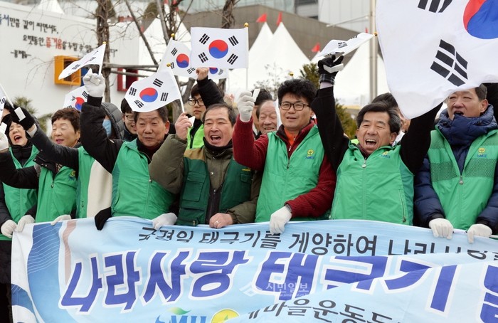 지난 29일 서울 동대문구는 청량리역 광장에서 제97주년 3.1절을 맞아 새마을운동 동대문구지회 회원 및 학생 60여명의 참여로 ‘3.1절 나라사랑 태극기 달아주기’ 행사를 개최했다. 사진은 관계자들이 태극기 달기 캠페인을 진행하는 모습.