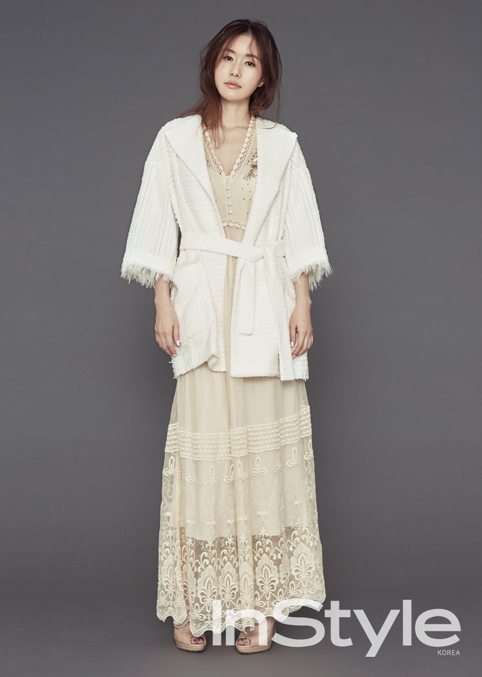 이번 화보는 편안한 라운지 웨어를 주제로 진행됐으며 김지수는 베이지컬러의 쉬폰 소재 롱드레스에 화이트컬러의 가디건을 매치,보헤미안 느낌의 화보를 선보였다.