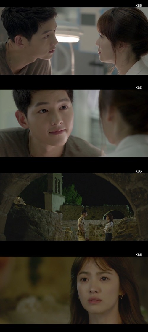 송혜교가 "그 얘긴 내가 꺼낼 때까지..."라고 저지하자 송중기는 "뭘 할까요 내가. 사과할까요. 고백할까요"라고 물었다.