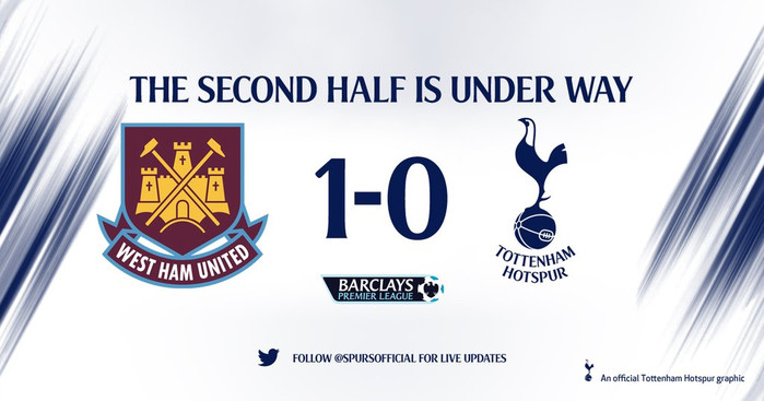 토트넘은 시작부터 무기력한 모습을 보여주더니 전반 6분 코너킥 상황에서 안토니오에게 선제골을 내주고 말았다. 파이예의 코너킥을 안토니오가 머리에 정확히 맞혀 요리스의 손에 맞고 그대로 골문 안으로 빨려들어 간 것.