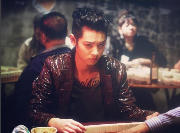 사진 속 그는 마작패를 펼친 채 심각한 표정으로 테이블에 앉아있다. 그는 과감한 '깐머리'로 카리스마를 발산하고 있어 팬들의 시선을 사로잡았다.