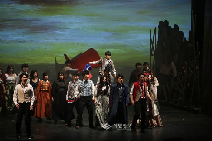 최근 서울 금천구 청소년들은 금나래아트홀 공연장에서 국내 유일의 청소년 영어 뮤지컬 ‘레미제라블’ 공연을 진행했다. 사진은 공연에 참여한 학생들이 열연을 펼치는 모습.(사진제공=금천구청)