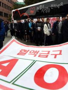 7일 오전 경기도 여주대학교에서 열린 ‘생명나눔 실천, 새학기 시작하는 대학생’ 행사에서 참가 학생들이 길게 줄을 서 있다.