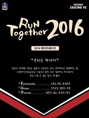 고양자이크로FC가 현대오일뱅크 K리그 챌린지 2016시즌의 캐치프레이즈를 “Run Together 2016”으로 정했다.